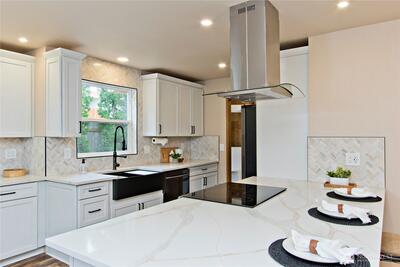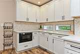 Farmhouse-style home with a welcoming covered front porch, set on a spacious corner lot connected to a cul-de-sac in the Tall Timbers community! Updated throughout with new laminate wood flooring, interior paint, leaf guard gutters, LED lighting, and custom dimmable zones in the living, dining, and kitchen areas. Remodeled and expanded kitchen features quartz countertops, an extra-large peninsula, added cabinetry plus a beverage/bar area with fridge. Main floor half bath updated with new fixtures. Four bedrooms upstairs, along with ample storage throughout the home and garage. Enjoy covered porches in both the front and back and established landscaping. Conveniently located near shopping, dining, and commuter routes.