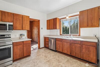 Welcome home to your over half-acre, fully fenced home-site served by highly rated Issaquah Schools. Through the gated entry, the charming home comes with a 2-bay detached shop, 2-car carport, and 200 sq. ft. detached dwelling with water, septic, and electric ready to be hooked up. Bring your ideas for the unfinished basement with outside entry that includes water, power, and washer/dryer hookups. Cut your power bills drastically with the recently installed, transferable warranty solar system. Stay comfortable inside your home year-round with a new heat pump and AC. Extend your living space out onto the spacious back patio, All this and room for gardening, and all your vehicles and toys. What do you need room for? You've got it here!