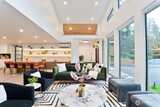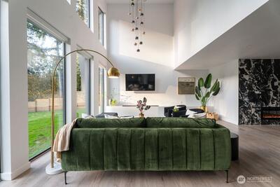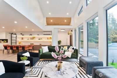 Experience unparalleled luxury in this 2025-reimagined contemporary rambler. Nestled on over half an acre of serene privacy, this 2,120 sq. ft. home seamlessly blends high-end design with effortless one-level living. The expansive open-concept floor plan is anchored by soaring vaulted ceilings and dramatic floor-to-ceiling windows that flood the home with natural light while maintaining complete seclusion. The chef’s kitchen features sleek custom cabinetry, premium finishes, and a waterfall island, flowing into a Great Room built for entertaining. Retreat to the primary suite, boasting a spa-inspired 5-piece bath. With 3 oversized bedrooms, a dedicated home office (potential 4th bedroom), and 2.75 baths, there is room for everyone. Premium LVP flooring runs throughout, leading to a paved backyard oasis and a versatile rec room. Located in a top-rated school district, this is "like-new" construction at its finest.