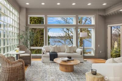 Experience the pinnacle of Pacific Northwest luxury at this expansive West Mercer Way waterfront estate. Nestled on the coveted "Gold Coast" of Mercer Island, this masterfully designed 6,092 sq. ft. residence offers an unrivaled blend of sophistication and privacy. Positioned on a lush 0.41-acre lot, the home captures breathtaking views of Lake Washington and the Olympic Mountains, providing a front-row seat to the island’s most iconic sunsets. A rarity in waterfront living, the property features 90 feet of private shoreline. The manicured grounds lead to the water’s edge, where a dock with deep-water moorage awaits—a centerpiece for the ultimate lakeside lifestyle. Retreat to your private wellness sanctuary featuring a custom sauna and outdoor hot tub perfectly positioned to soak in the lake, mountain silhouettes, and endless stars. The interior is in impeccable condition, boasting brand-new interior paint, designer carpeting, and refinished hardwood flooring. The grand floor pl