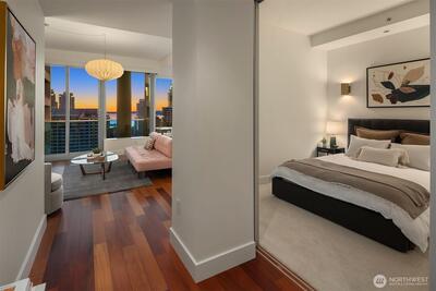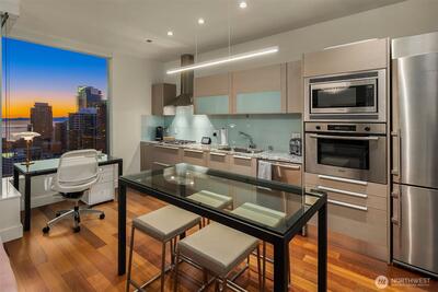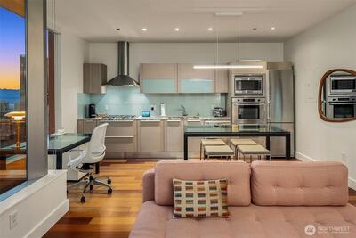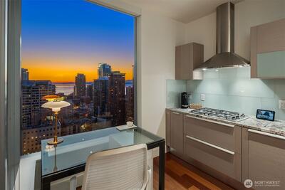 Experience elevated city living at Olive 8, where modern luxury and unbeatable convenience converge in the vibrant heart of downtown Seattle. This beautifully appointed 1-bedroom, 1-bath residence showcases sweeping west-facing views of the Puget Sound, glowing sunsets, and the dynamic city skyline—creating a stunning backdrop from day to night. Thoughtfully designed with comfort and style in mind, the home includes a highly sought-after parking space and dedicated storage unit. Residents enjoy access to an exceptional suite of amenities, including 24/7 concierge service, a state-of-the-art fitness center, yoga studio, game room, pet retreat, and an elegant party lounge—perfect for entertaining. For those seeking a resort-style experience, optional hotel membership provides access to the Hyatt’s luxurious pool, hot tub, and sauna. Ideally located just steps from Pacific Place, Amazon, Whole Foods, and world-class dining destinations like Din Tai Fung, this home offers the u