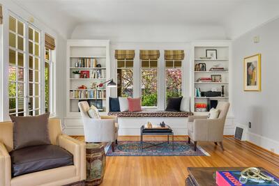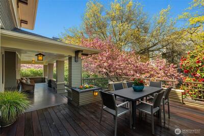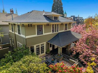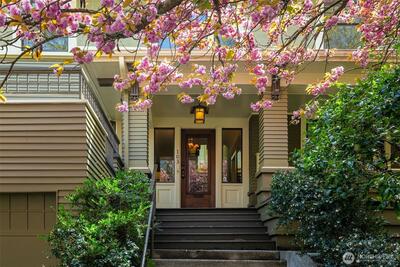 Perched proudly on a corner lot, this Grand Craftsman has been witness to Seattle’s story since 1907—now ready to be part of yours. Blending timeless character with thoughtful updates, this five bedroom home offers the best of both eras. Inside, classic architectural details shine—rich hardwood floors, charming window seats, cozy nooks & original craftsmanship that simply can’t be replicated. At the same time, modern living is embraced with an open-concept, updated kitchen & baths, & a lower level with media room, den, BR, & steam shower. A laundry & wine cellar completes this floor. French doors invite you outside to a garden-like setting, where a wraparound porch & decks create spaces for celebrating everyday life. Whether it’s morning coffee or evening dinners, this home lives as beautifully outdoors as it does within. Natural light fills the home with a central staircase that carries sunlight through its core. Skylights above & corner windows create an interplay of light