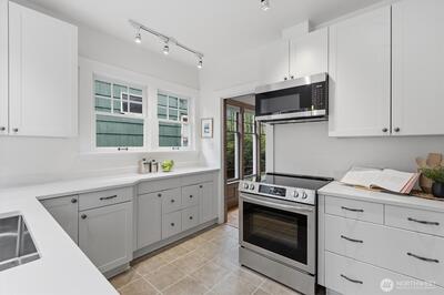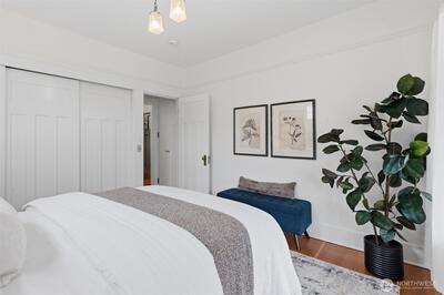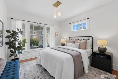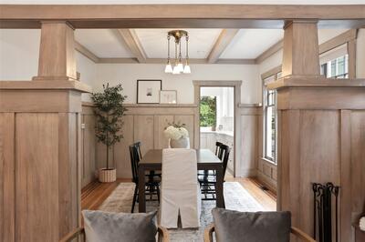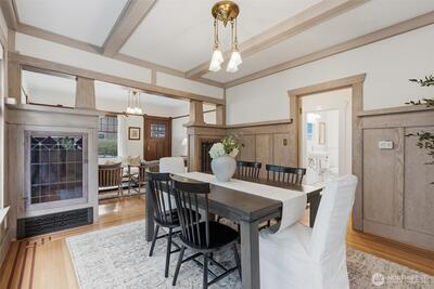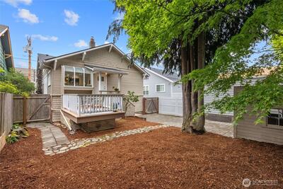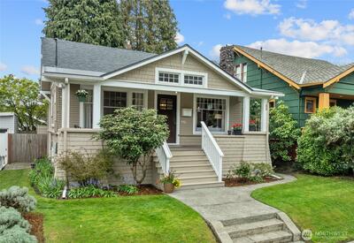Listed for the first time since 1992, this stunning Craftsman has it all - charm, location and easy living! Nestled on a quiet Woodland Park street blocks to parks, tennis courts, playfields, the zoo, rose garden and an endless array of cafes, restaurants, bars and local shops. Commuting is a breeze with quick access to 99 and nearby bus lines to DT/SLU. This home shines with original woodwork, stained-glass windows and hardwood floors. A light-filled main level lives large with 2 generous bedrooms and a fully remodeled bathroom. Get cozy next to the wood-burning fireplace, enjoy meals in the dedicated dining room framed by windows and original built-ins then flow right into a sparkling kitchen with fresh countertops, fixtures and appliances. You'll find easy access to the private and spacious backyard with a deck perfect for dining al fresco. Don't miss the warm and inviting lower level with a 3rd bedroom, 3/4 bathroom, additional living area and a large rec/flex room that can easily