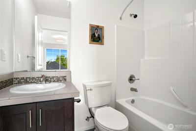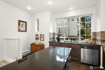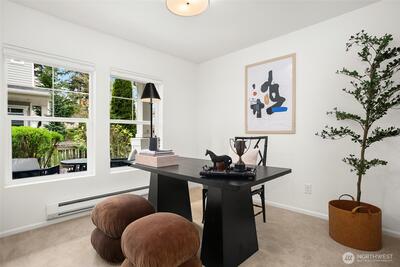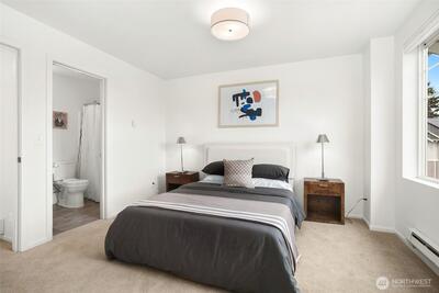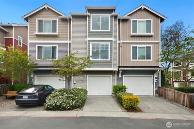 Begin your mornings with coffee and a quiet walk through tree-lined paths, where your neighborhood's parks, trails, and open green space feel like an extension of home. Nestled in West Seattle’s connected and green-designed High Point community, this townhome offers desirable location, convenience and turn-key livability. Gather in a light-filled main level where kitchen, dining, and living spaces flow effortlessly together, refreshed with all new interior paint, new carpeting, and stainless appliances, including a new refrigerator and range. Large windows bring in soft natural light throughout the day. New window coverings were installed in both bedrooms and lower level den for comfort and privacy. Upstairs, two ensuite bedrooms offer flexibility, each with its own bath and generous closets. The entry level features a versatile bonus space, ideal for a home office, workout area, or creative studio. An attached one-car garage with additional driveway parking adds everyday ease. Life