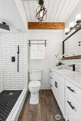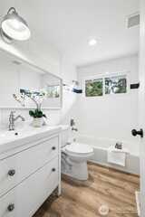 This is the one you’ve hoped to find. Every inch of this Fairwood West home has been lovingly updated to deliver a clean modern farmhouse aesthetic with max livability. Light-filled spaces and fresh finishes strike a perfect balance of style and warmth. Bamboo floors flow throughout the main level, where three bedrooms and a full bath are tucked into a private wing. The open-concept living area centers around a fireplace and connects seamlessly to dining and entertaining, both inside or on the attached Trex deck. Lower level offers exceptional flexibility, anchored by a spacious family room and containing multiple functional areas. Large bedroom w exterior access, adjacent living area, and bathroom open the door to ADU or multigen potential—or serve beautifully as private primary-style retreat. Flex room easily adapts as a fifth bed, office, guest space, or creative studio. Out back, the yard is a dream. Designed w multiple usable zones—level lawn, swings, room to run—plus a la