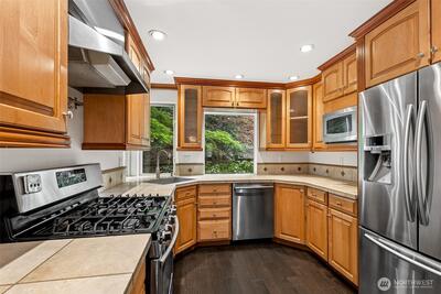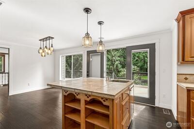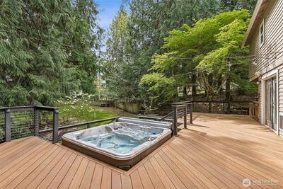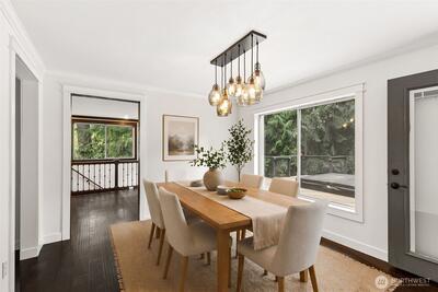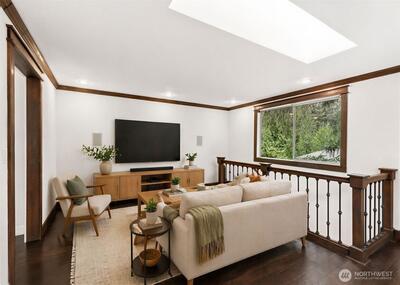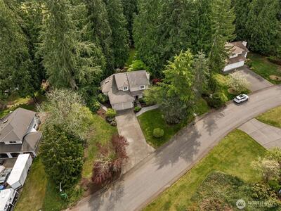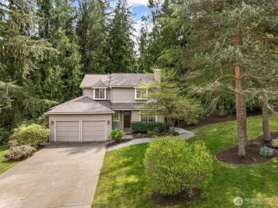 Enjoy the peace and privacy of this beautiful 29,970 square foot private lot, perfectly nestled in a serene, wooded setting. Ideally located just 10 mins from DT Redmond & Hwy 520, this home offers the rare combination of tranquil retreat living w/ unbeatable urban convenience. This warm & inviting LR centered around a cozy fireplace is the perfect spot to unwind. The open kitchen & dining areas are flooded w/ sweeping views of nature, creating an effortlessly cheerful everyday living space. The open-concept kitchen features SS appliances & a large prep island, ideal for cooking & entertaining alike. Fresh interior paint and beautiful engineered HW flooring flow throughout the entire main flr. A comfortable family rm off the kitchen adds even more flexibility, while the fully finished basement has the laundry room and a space for a home office, craft room, workout space, or ultimate game room. Upstairs, the spacious primary bedroom boasts a huge walk-in closet & a beautifully updated
