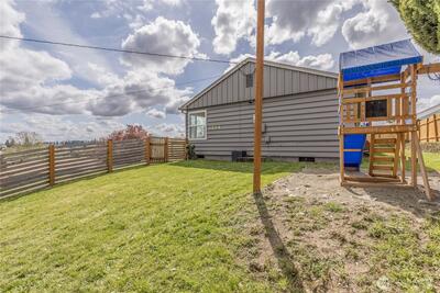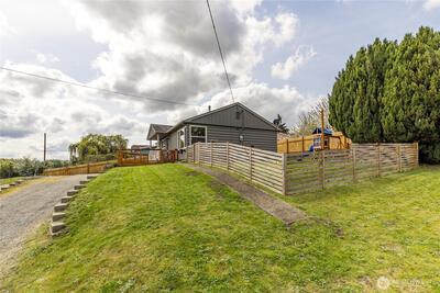 Welcome home to this single-level Tacoma gem with sweeping territorial views of the valley, Mount Rainier, and the Port of Tacoma. This move-in-ready home features a light-filled, open-concept interior with low-maintenance LVP flooring throughout. The renovated kitchen boasts rich butcher block countertops, a classic subway tile backsplash, and newer stainless appliances. Major infrastructure updates completed in 2025 offer ultimate peace of mind, including a brand-new sewer line and a completely rebuilt front deck with poured footings and new railing - the ideal spot for morning coffee with a view! The large, fully-fenced yard is set back from the road for added privacy, featuring a lush lawn on three sides and a dedicated play area with a newer playset that stays with the home. Parking is a breeze with the attached 1-car garage and a generous driveway with additional side parking for an RV or boat. Perfectly located with easy access to local amenities and multiple freeways, this prop