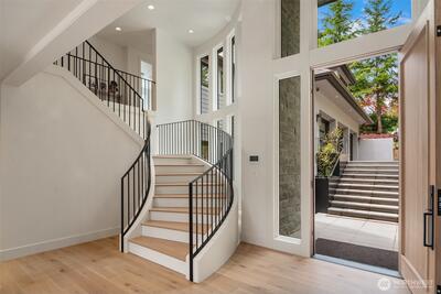 Wide, expansive views & 100 feet of waterfront at this newly completed, custom, street-to-water estate by Saad Custom Homes. Placed on a shy acre, this home offers the best of indoor/outdoor living with multiple entertaining areas & expansive flat lawn at the water’s edge. Private dock accommodates a 70+ ft yacht & additional watercraft. Inside, enjoy brand-new construction: the kitchen, dining & great room are the heart of the home providing thoughtful spaces for everyday living & festive gatherings. Guest suite & office on the main level + six additional bedrooms including view primary with spa-like bath. Ideal floor plan with rec room/bar, gym & sauna. Nothing is missing at this modern luxury estate in one of the most sought-after communities in the Northwest.
