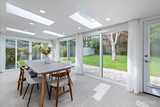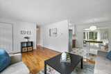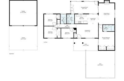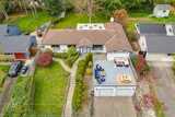 Presenting a truly one-of-a-kind rambler on a large, wide lot offering exceptional space, privacy, and versatility. Thoughtfully designed with three bedrooms on one wing and a private primary suite on the other. A unique feature is the expansive front patio above the 2-car garage, creating an incredible outdoor living space with endless possibilities. Picture an outdoor lounge with BBQ for hosting gatherings, morning coffee just steps from your bedroom, or sipping your evening tea while enjoying pink-sky sunsets. Inside, you will find real hardwood floors, beautiful tilework, & elegant light fixtures that create a warm, inviting feel throughout. The fully enclosed sunroom is a standout feature, complete with sliding doors, skylights, recessed lighting, offering great flexibility as an additional living area. The backyard is fully fenced and landscaped with mature trees, including an apple tree and cherry blossom tree, along with lush greenery that create a peaceful, private outdoor ret