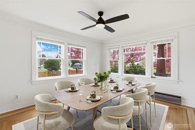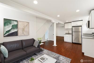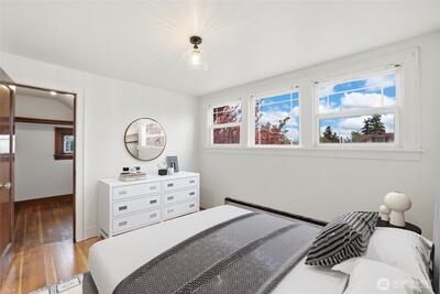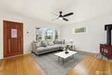 Classic Tacoma Craftsman charm packed with character, updates, and versatility. From the covered front porch with brick pillars and exposed rafter tails to the beautifully refinished oak hardwoods with herringbone inlay inside, this home celebrates its period architecture while delivering modern updates where they matter most. The remodeled kitchen features crisp white shaker cabinetry, sleek dark counters, stainless appliances, recessed lighting, & deep undermount sink. Updated bathrooms include a spa-inspired main bath with floor-to-ceiling subway tile, a fixed square showerhead plus handheld sprayer, soaking tub, & matte black fixtures. A gas stove on a decorative tile hearth anchors the sunlit living room, accented by coved ceilings, original millwork, & wood doors w/ period hardware. Upstairs offers generous bedrooms, a walk-in closet w/ original hook rail & soft dormer light. The lower level presents a fully functional ADU/MIL w/private exterior entrance, full kitchen, full bath,