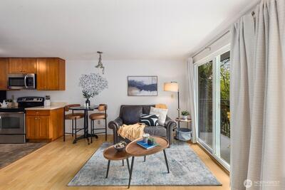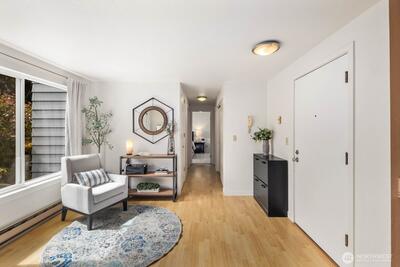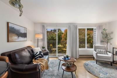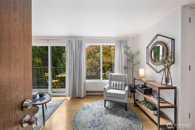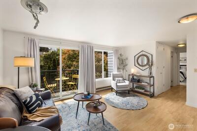 Bright and welcoming 2-bedroom home in a prime Seattle location with easy access to everyday essentials and commuting routes. This corner residence brings in abundant sunlight and offers a comfortable, open layout with a private outdoor space for relaxing or entertaining.Interior updates include brand new carpet, updated flooring, and a refreshed kitchen and bathroom with modern finishes throughout. Thoughtful design and clean lines make this home feel both functional and inviting.Additional perks include a designated covered parking space, secure entry, elevator access, and extra storage options. No rental cap provides flexibility for future use, whether as a primary residence or income-producing property.Close to parks, shopping, dining, and transit—this is an excellent opportunity to own in a well-connected neighborhood.