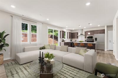 Wolf Point in Edgewood by D.R. Horton! A beautiful community surrounded by a native growth protected area of trees and conveniently located just minutes from Hwy 167 and I-5. The Huntington floor plan lives easily - gourmet kitchen with a large quartz island, freestanding gas cooking range, soft closing cabinets & large eating space, nice big pantry and stainless-steel appliances. Expansive great room with contemporary fireplace and private dining room. Upstairs hosts primary suite w/ full bath and walk-in closet. Three bedrooms plus bonus, laundry with windows, and storage galore. Built-in Smart Home Features. Electric Vehicle charging in your 3-car garage including 25 ft deep 2 car section for your boat plus storage galore! Bakes to protected open space with territorial views *Buyers must register their broker on first visit, including open houses. Below market rates available for qualified buyers with DHI Mortgage. Summer completion.