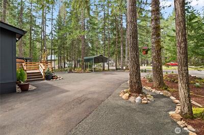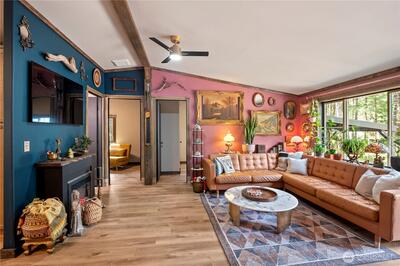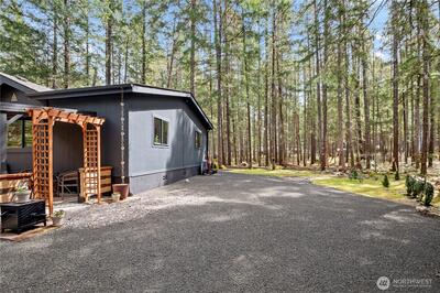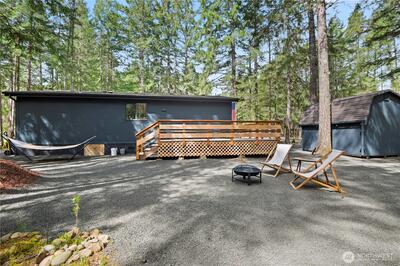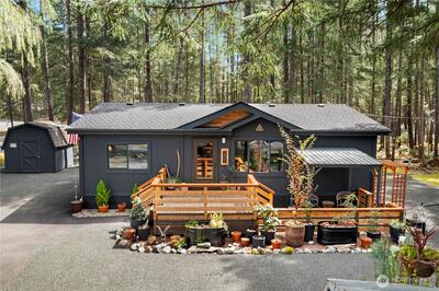 Welcome to a Lake Cushman retreat that feels lifted from the pages of a design magazine. Fully restored with care and intention, this 3-bed, 2-bath home has been transformed top to bottom with a new roof, fresh paint inside and out, updated surfaces throughout, and rebuilt outdoor spaces that make every arrival feel special. Set on a manicured corner lot near Lake Kokanee, the property backs to a greenbelt for added privacy and extra space. Towering evergreens, curated landscaping, winding pathways, and inviting gathering areas create a storybook setting where mornings feel peaceful and evenings under the trees are enchanting. Inside, the home offers a warm, unforgettable vibe—stylish, inviting, and hard to replicate. Rich colors, layered textures, and tasteful finishes give the space personality while maintaining comfort and function. The layout flows beautifully with generous living areas, a stunning kitchen, and private bedroom separation ideal for guests or everyday living.