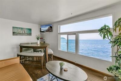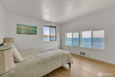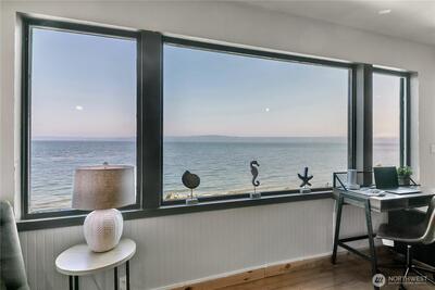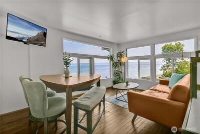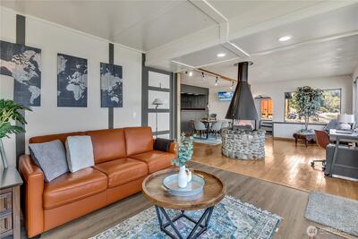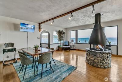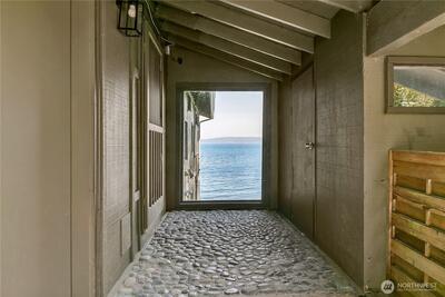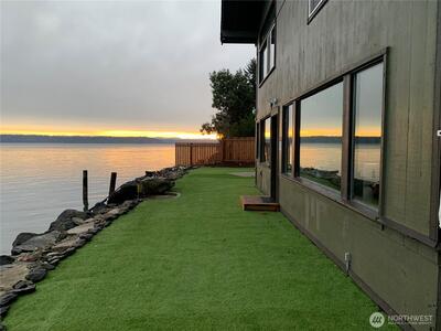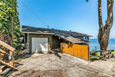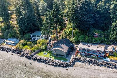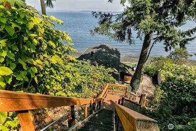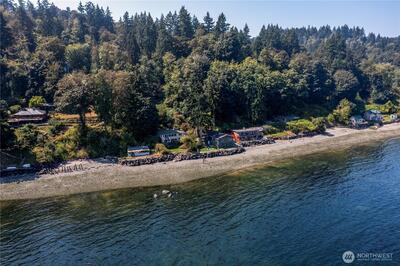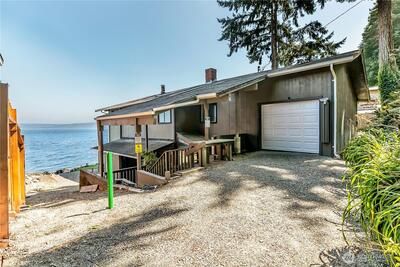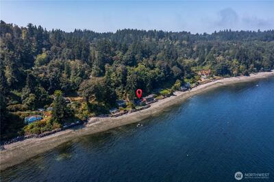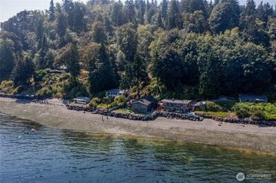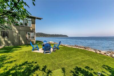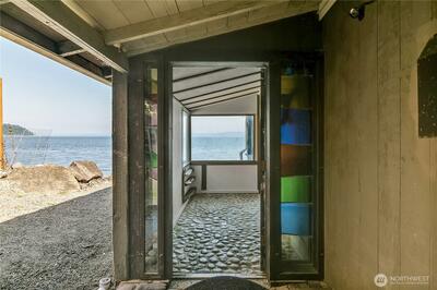 Rare low-bank waterfront with direct beach access in Glen Acres—an increasingly limited offering where most properties are high-bank and sacrifice shoreline usability. Featuring 85± feet of stone bulkheaded Puget Sound frontage, this east-facing home offers true walk-out access with expansive water views and 180° vistas from nearly every room. This serene, idyllic home showcases breathtaking bay, Seattle skyline, ferry, and Cascade views. Interiors are thoughtfully designed to capture the scenery—ideal for relaxing on the sofa or enjoying the upper loft. Life here is simple and memorable—morning coffee at sunrise, evenings by the water, and quiet moments with a book as waves meet the shore. Spacious yard and shoreline extend everyday living outdoors. Just ~10 minutes to the ferry terminal and minutes to downtown Vashon. Remodeled in 2023 with new septic, updated utilities, outdoor improvements, and double-pane storm windows. Flexible two-level layout with separate entrances, tw