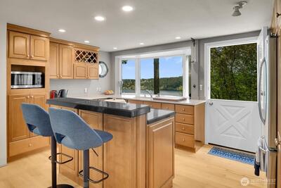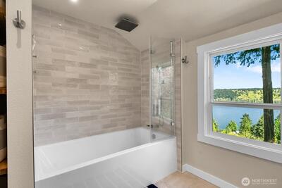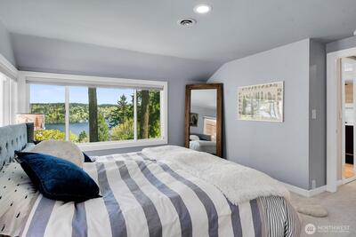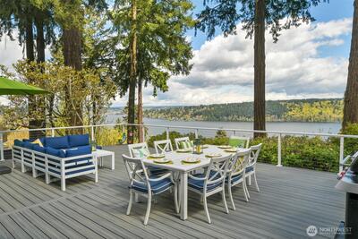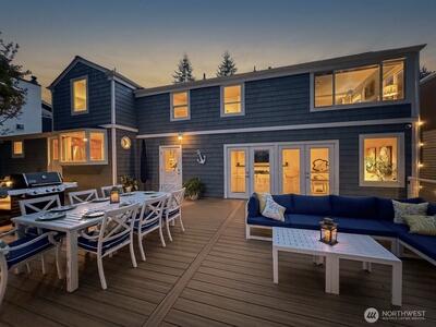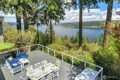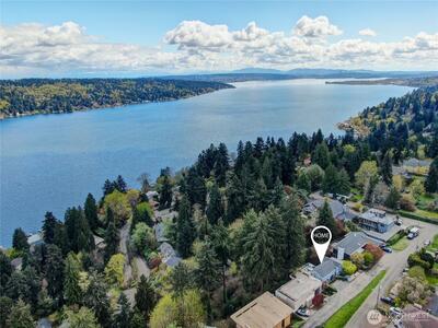 Perched on a quiet dead-end street in the heart of Cedar Park, this turnkey Cape Cod residence offers a combination of modern infrastructure and sweeping, unobstructed views of Lake Washington and Mount Baker. The interior has been modernized, featuring energy-efficient windows, new Trex front and rear decks, and a high-performance hot/cold heat pump system for year-round climate control. Practical investments include a brand-new roof, fresh interior and exterior paint. The open-concept living space transitions seamlessly to the expansive lakeside deck perfect for large scale entertaining or quiet morning coffee overlooking the water. A large bonus room provides flexible space for a home office, gym, or a 4th bedroom. Located just one block from Cedar Park Elementary, the property offers immediate access to the Burke-Gilman Trail via adjacent neighborhood steps. This meticulously renovated home is fully optimized for a sophisticated and tranquil lakeside lifestyle.