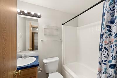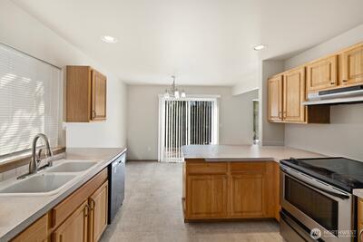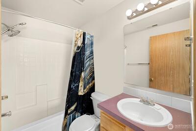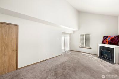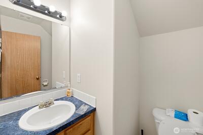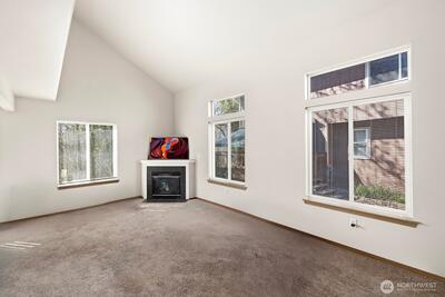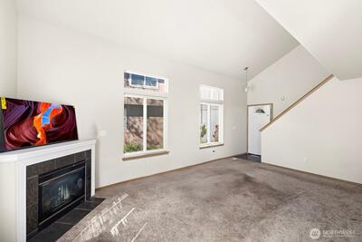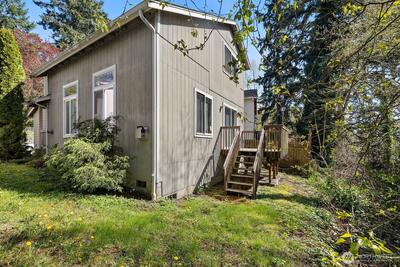 Beautiful 3-bedroom, 2.5-bath home nestled in a quiet cul-de-sac. The main level features a welcoming formal living room with a cozy fireplace, an open-concept kitchen with excellent flow, and a dedicated dining area with sliding door access to the back deck—perfect for indoor-outdoor living. A convenient powder room and attached two-car garage complete the main floor. Upstairs offers three spacious bedrooms and a full hall bath, including a generous primary suite with a walk-in closet and private en-suite bath. The home backs to a serene wooded area, providing exceptional privacy and a peaceful natural setting. Ideally located just a short walk to Wapato Park and minutes from shopping, transit, and entertainment. Comfort, convenience, and location come together—this is a must-see!