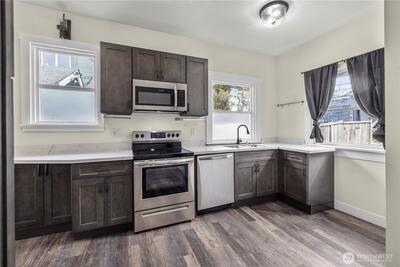 This charming home that is in the heart of Lincoln District close to shopping, the freeway, and Lincoln High School is now on the market! Matching stainless steel appliances, quartz countertops, beautifully kept hardwood floors, and upgrades that are consistent throughout. Fully fenced backyard with an alley accessible garage. Exterior is in great shape. There is a large basement, gorgeous oversized windows, rounded entryways, and a wood fireplace! This home is move in ready and will not disappoint! Owners are non-smoking and do not have pets . Large square footage w/ tons of updates that give a modern feel with the strong bones and character of an old home.