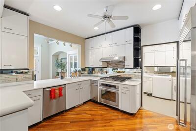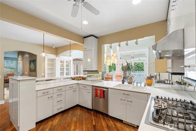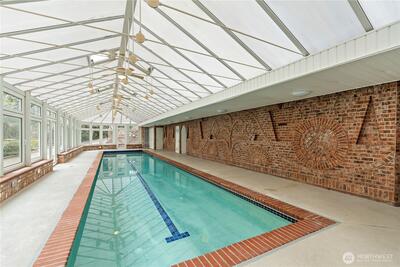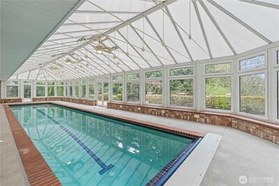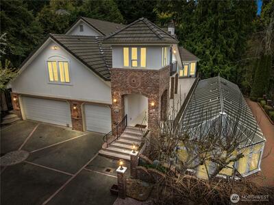 Discover refined living in this stately Mercer Island home offering 3,720 square feet of thoughtfully designed space. This elegant residence features 4 spacious bedrooms, a private den, and an expansive bonus room—perfect for today’s flexible lifestyle. A sizeable living room with a gas fireplace creates a warm and inviting atmosphere, while the impressive 2-story dining room showcases a stunning artisan chandelier, ideal for memorable gatherings. Beautiful hardwood floors with custom inlays flow throughout, complemented by heated tile floors in the entry, dining room & mud room for added comfort. Convenience meets functionality with an elevator, a large laundry room with abundant cabinetry, and a separate mud room with extensive built-ins. Storage is plentiful throughout the home, and the oversized 3-car garage provides ample space for vehicles and hobbies alike. At the heart of the home, a breathtaking atrium offers a true retreat, complete with an in-ground pool and private s