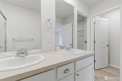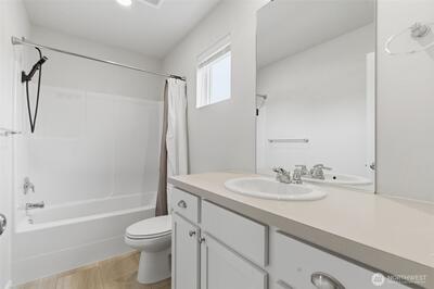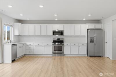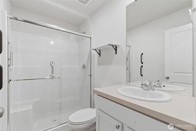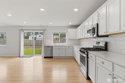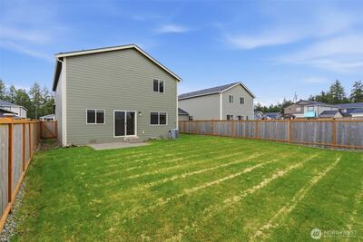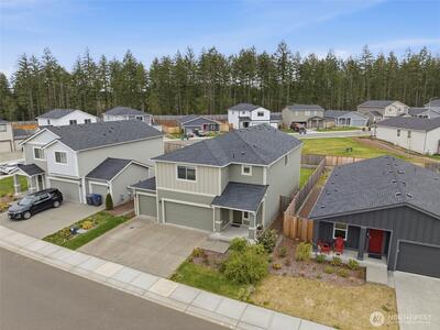 Perched above Belfair is this beautiful nearly new 2-story home built in 2023. Offering the perfect blend of modern design and functional space, this 5-bedroom, 3-bathroom residence is designed to accommodate any lifestyle with ease. The open-concept main floor features a seamless flow between the living, dining & kitchen areas (aka the great room); perfect for hosting gatherings or enjoying quiet evenings. Upstairs are 3 guest bedrooms and the generously sized primary bedroom with its own private bathroom and a huge walk-in closet. 3-car attached garage with ample storage throughout. Outside, the fully fenced backyard provides a secure and private oasis for pets, play, gardening or weekend BBQs. Situated in Belfair's newest neighborhood, Olympic Ridge, with sidewalks, trails, and common areas, don't forget the VIEWs of the Hood Canal and the Olympic Mountain Range while driving up. Minutes away from schools, shopping centers, Post Office, and major highways for an effortless commute.