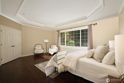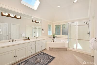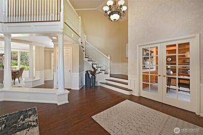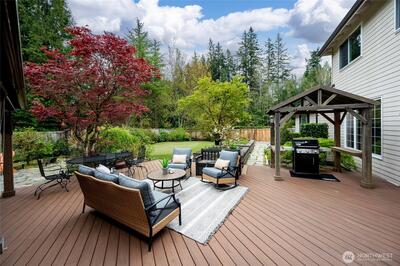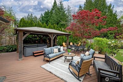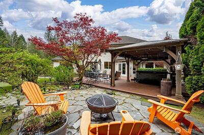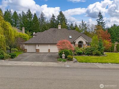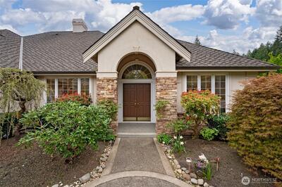 Exceptional offering in Sammamish’s coveted Beaver Lake Estates enclave. Set within the serene community beauty, this exquisitely Buchan-built residence is a rare blend of sophistication, comfort and resort-inspired living. Thoughtfully designed for both elegance and ease, the home showcases a highly sought-after main-floor Primary Suite, an ideal private sanctuary featuring refined finishes and effortless accessibility. Dramatic 2-story foyer, espresso-stained hardwoods, large kitchen opens perfectly to family room, there's a bonus office on the main and the upstairs hosts 3 bedrooms/full bathroom and another living flex space. Tons of storage spaces, 2 gas fireplaces, sprinkler system, wired for generator, skylights and French Doors to boot. Beyond the interiors, the property unfolds into a truly extraordinary outdoor experience. The expansive and level grounds have been transformed into a private oasis - lush, secluded, and designed for year-round enjoyment. Unwind beneath the sta