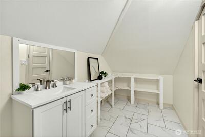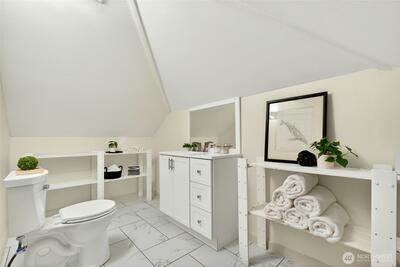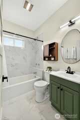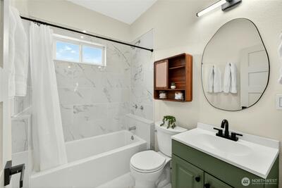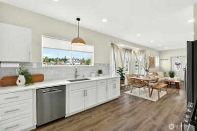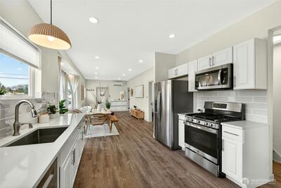 Move-in ready and full of must-have features, this 4-bedroom, 2.5-bath home sits on a fully fenced corner lot in Tacoma and was completely updated in 2022, including a new roof. Enjoy the convenience of main-level living with 3 bedrooms on the main floor, including a primary suite with en suite bathroom, plus a second full bath for guests’ comfort. Upstairs offers a spacious loft-style bedroom with a half bath—ideal for a home office, guest retreat, or flexible bonus space. The open-concept floor plan creates seamless flow between the kitchen, dining, and living areas—perfect for entertaining or everyday living. The kitchen features quartz countertops and a gas stove, combining style and functionality, while natural light fills the home and enhances the warm, inviting feel throughout. Step outside to a fully fenced yard with garden beds ready for your personal touch, plus the added space and privacy that comes with a corner lot. Located just a short walk from S Tacoma Way, you’