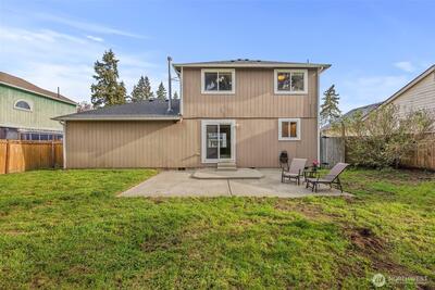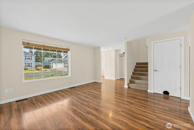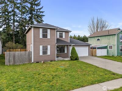 Move-in ready and easy to love, this 2-story home offers a bright, open layout in a quiet Yelm neighborhood. Natural light fills the home, creating a warm and welcoming space that flows from the living area into the kitchen, featuring stainless steel appliances and a gas range. A convenient guest half bath is located on the main floor, adding functionality for guests and daily use. Upstairs, you’ll find 3 comfortable bedrooms, including a primary suite with its own bathroom. The large, fully fenced backyard offers plenty of space to relax, entertain, or make it your own, giving you that extra room that’s hard to find. No HOA adds extra flexibility and freedom. Located near parks, trails, schools, and JBLM, with easy access to local amenities, this home offers a great mix of comfort, space, and convenience.