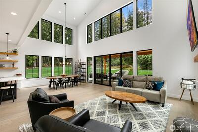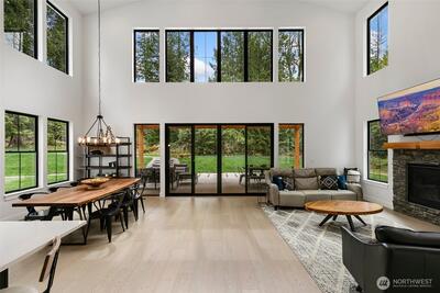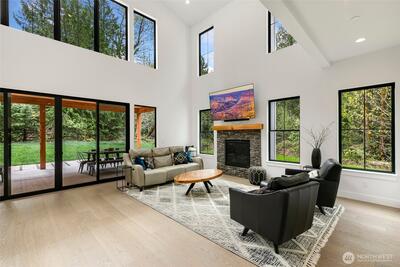 Experience unparalleled elegance in this recently built, contemporary 2-story home perfectly situated on a tranquil 2 acres surrounded by public land and neighbors with acreage. Featuring clean architectural lines and sophisticated design, this 4-bedroom residence offers a dramatic vaulted great room with floor-to-ceiling windows that flood the space with natural light. The gourmet kitchen showcases quartz countertops, an abundance of storage, and a full suite of luxury Dacor appliances. The primary suite is a private retreat, complete with a spacious walk-in closet and a lavish en-suite bath with heated floors, dual-head shower, and deep soaking tub. All baths have been upgraded with premium finishes and fixtures, and all bedrooms feature custom built-in closet systems. Additional luxury upgrades include new upstairs flooring, a professionally landscaped drainage system, upgraded fire suppression, a whole-house generator and surge protection, and a 200 sq ft shed matching the home’