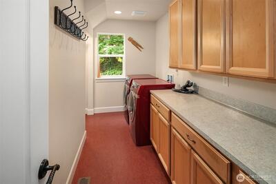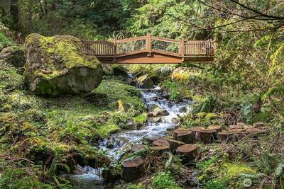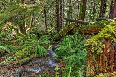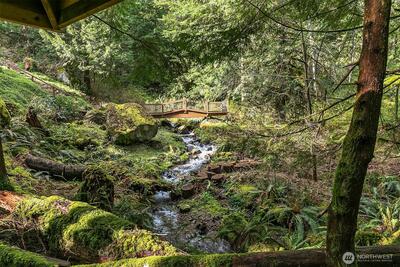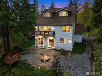 Tucked off iconic Mt Si Road, a breathtaking half-mile private drive welcomes you into a serene landscape reminiscent of the Olympic National Park. Wind through moss-covered giants and hidden gullies to arrive at this light-filled 3,290-square-foot retreat. Inside, the home features a bright, open floor plan with sustainable bamboo flooring and a stunning wall of windows that brings the beauty of the forest indoors. The chef‘s kitchen blends function and style, showcasing a granite island countertop and custom cabinetry thoughtfully designed for optimal storage. Upstairs, a versatile 700-square-foot bonus room currently serves as a game room, office, and media space, offering flexibility to suit your lifestyle. The private primary suite is a true sanctuary, complete with a balcony overlooking a year-round creek with perfectly placed waterfalls. A two-car attached garage provides everyday ease with modern amenities, while the surrounding patios create a peaceful retreat-ideal for