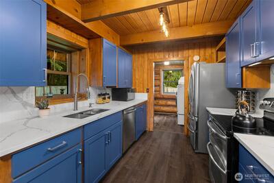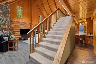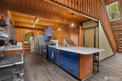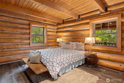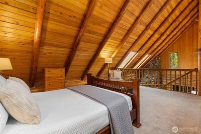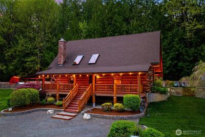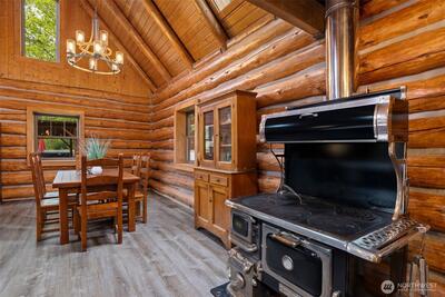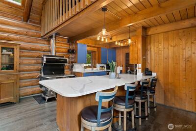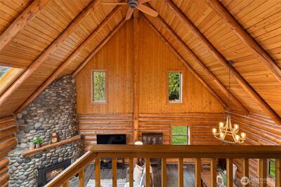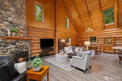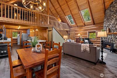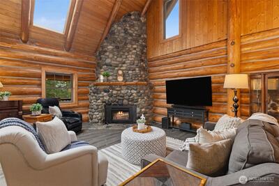 A Lifestyle Beyond The Expected Begins Inside This Arcadian-Meets-Modern Custom Log Home, Where Craftsmanship, Warmth & Quality Define Every Space. Recently Revitalized With Professional Media Blasting & Re-Chinking (Designed To Last For Decades,) The Home Feels Both Timeless & Renewed. At Its Heart Stands A Dramatic Wood-Burning Fireplace Insert With A Floor-To-Ceiling Stone Hearth And Soaring Two-Story Ceiling—An Unforgettable Centerpiece That Anchors The Entire Living Experience. Newer Windows And Skylights Bathe The Interior In Natural Light, Highlighting Rich Timber Construction & Creating An Inviting, Elevated Atmosphere. Renovated Kitchen Features New Quartz Counters, Updated Stainless Steel Appliances & Custom Cabinets. The Loft Area Includes Two Bedrooms With New Carpet & An Updated Bathroom With Heated Tile Floors. Main Level Bedroom With An Updated Attached Bath & HUGE Walk-In Closet. A Newer Heat Pump With Central A/C Plus A Mini-Split System Ensure Year-Round Comfort. Th