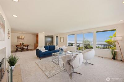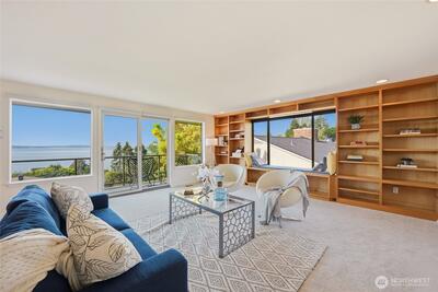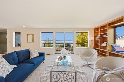 Here it is, your chance to live the Blue Ridge dream. Lovingly cared for by the same family for the past 30 years, it’s time for a new chapter. This classic mid-century offers an open floor plan with windows throughout to take in the spectacular Sound and mountain views. Thoughtful updates to this 4-bedroom, 3-bath home include custom built-ins in the living and dining room and an EV charger in the 2-car garage. The finished lower level includes a large flex space for a shop or hobby room. Out back, a Japanese-style garden with flagstone patio provides a tranquil oasis for your morning coffee or a perfect setting for entertaining. All of this, plus Blue Ridge amenities of an Olympic-sized heated swimming pool, tennis & pickleball courts, and a private waterfront park.
