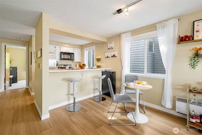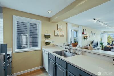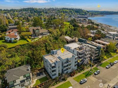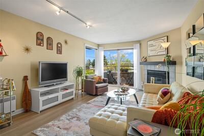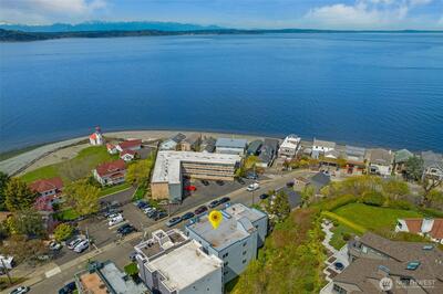 Soak in the sunshine, magnificent sunsets, and panoramic views of Puget Sound and the Olympic Mountains from your own waterfront retreat. Watch Orcas playing & the Downtown & West Seattle ferries pass by from the comfort of your deck, or stay inside and snuggle up by the fireplace on cooler coastal days. Ideally situated on a designated “Permanently Healthy” pedestrian street, this charming 2-bedroom, 1-bath home sits directly across from the iconic Alki Point Lighthouse and Coast Guard station. Just steps away, you can access the Constellation beach park for tide pooling, kayaking, and paddle boarding. Or simply enjoy the actual sandy beach, and it's breathtaking views. A short 5 min walk or 2 min bike ride North and you get a vibrant mix of restaurants, cafés, and shops. Hop on the nearby fast ferry for quick access to downtown Seattle. Live in one of the only buildings with nothing but greenspace behind it; where you know all of your neighbors, & function as a co-op with