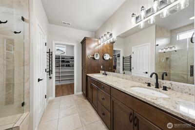 MOVE-IN READY UPGRADED HOME IN TRILOGY AT TEHALEH 1,802 sq ft | 2 Bedrooms | 2.5 Baths | $619,000 | Active Adult Living Over $50,000 in Recent Upgrades — Turn-Key & Beautiful! Seller Will Pay the $9,500 Seven Summits Lodge Membership Fee at Closing!Interior & Exterior Recent Upgrades: Newer kitchen appliances including new double oven & microwave | New luxury vinyl plank flooring throughout | New carpet on stairs | New custom master closet system | Fresh interior & exterior paint | New washer & dryer | New 8ft glass shower door | All new indoor & outdoor lighting | All new faucets & shower fixtures | New door handles & hinge hardware throughout | Newly tinted front door | Newly painted garage | Newly tuned gas generator included | New garage door opener with backup battery | New window coverings & screens | Heated towel rack | Furnace & AC serviced twice a year | Newer smart thermostat | Newer front door smart lock | Front yard new mulch | Windows cleaned | New electronic back patio