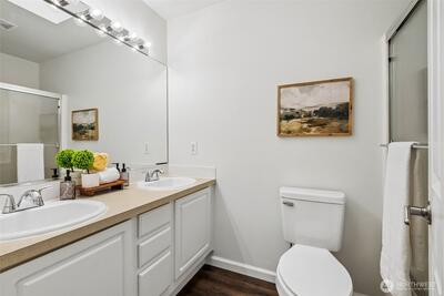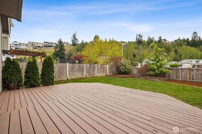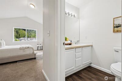 Turn-key perfection in Panorama Heights! This meticulously refreshed 3-bedroom, 2.5-bathroom home lives much larger than its 1,306 sq ft footprint. The interior has been fully transformed with brand new luxury vinyl plank (LVP) flooring throughout the main level and brand new carpet upstairs. Every inch feels fresh with new interior paint extending to all doors and trim.The updated kitchen shines with new stainless steel appliances and modern fixtures. Upstairs, the primary suite offers a spacious retreat with vaulted ceilings, a walk-in closet, and a private attached bath. Additional bedrooms are generously sized and flooded with natural light. Step outside to a huge back deck—recently stained and ready for entertaining—overlooking a fully fenced yard. Complete with an attached garage and a location that is a dream for commuters, this Bonney Lake gem is move-in ready.