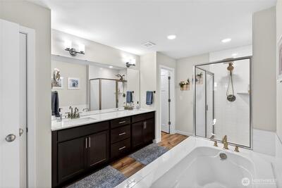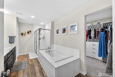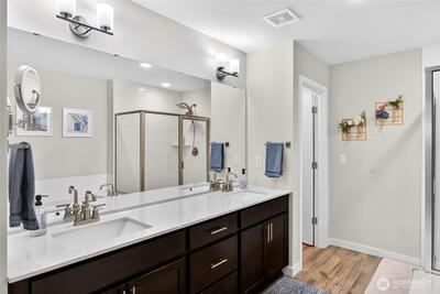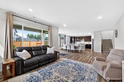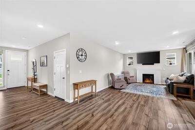 Better than brand new and truly move-in ready, this stunning 2023-built Century Communities home is located in the highly desirable Puyallup School District. Offering 4 bedrooms, 2.5 baths, a spacious bonus room and main-floor office, this home is designed for modern living. Open-concept layout seamlessly connects the dining area, kitchen and great room, highlighted by a cozy fireplace with custom mantle. The chef's kitchen features a large center island, quartz countertops, cabinet lighting, built-in blue tooth speakers and a thoughtfully designed custom corner pantry. Step outside to extend your entertaining space with a covered patio, complete with storage-ready patio table. Durable luxury vinyl plank flooring throughout the main level. Retreat to the exquisite primary suite with spa-inspired bath boasting dual vanities, built-in makeup station, soaking tub and separate shower. The spacious custom walk-in closet offers exceptional organization. A well-appointed laundry room include