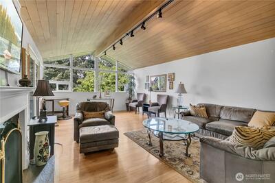 Welcome to sought-after Normandy Park! This spacious 3,440 SF home on over a quarter-acre lot offers timeless character, flexible living, and year-round Puget Sound views. Built in 1959, this well-cared-for residence features 4 bedrooms with 2 upstairs and 2 in the daylight walkout basement, plus 1 full bath and 1¾ bath. Real hardwood floors add warmth and charm, while the updated kitchen and bath blend classic style with modern comfort.Enjoy stunning Sound views from the upper level, with the opportunity to open them even further through minimal trimming. The daylight walkout basement has been used as a separate living space, creating excellent flexibility for multigenerational living, guests, extended stays, or potential income opportunities. Attached 2-car garage adds convenience, while the level private quarter-acre+ lot features mature landscaping, partial fencing, and abundant usable outdoor space for entertaining, gardening, or play.No HOA means added freedom and fewer restrict