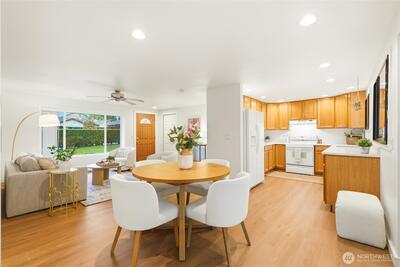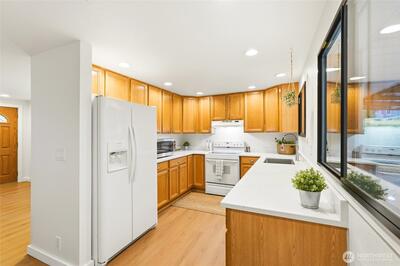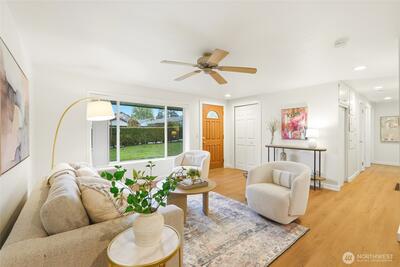 Freshly updated and full of charm, this Renton Highlands 3-bedroom rambler is ready to welcome you home! Enjoy new vinyl plank flooring, fresh interior paint, and updated countertops. Step into a spacious living room filled with natural light from a large picture window, with flexible space for both living and dining. The large kitchen offers plenty of countertop space and great natural light from windows overlooking the backyard. Step through the sliding glass door into a serene outdoor setting featuring a large covered patio—perfect for year-round entertaining. The fully fenced yard is beautifully maintained with mature landscaping and plenty of space for gardening and outdoor enjoyment. Convenient utility room with washer & dryer and additional storage just off the kitchen. Down the hall, you’ll find ample storage, a full bath, and generously sized bedrooms. Carport plus additional driveway parking. Ideally located just minutes to I-405, Parks, The Landing, Boeing, shopping, din