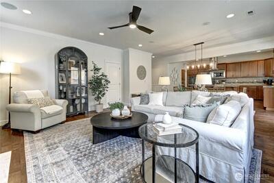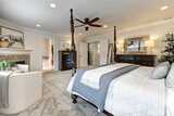 Welcome to the Highlands at Cedar Downs, where timeless elegance meets modern comfort. This beautifully crafted home is ideally located near lakes, parks, trails and convenient commuter routes—perfect for both everyday living and weekend adventures. The open-concept floorplan offers an inviting great room with custom built-ins and a cozy gas fireplace creating a warm space for gathering The chef’s kitchen is both stylish and functional, featuring a spacious island, and abundant prep space, all flowing seamlessly into the dining area and covered patio for easy indoor-outdoor living. A butler’s pantry adds convenience and extra storage. Elegant details such as rich engineered hardwoods, crown molding and wainscoting enhance the home’s timeless appeal. The main floor den with French doors provides a quiet retreat for work, study, or play. Upstairs, the spacious primary suite offers a relaxing escape with its own fireplace, a spa-inspired five-piece bath and a custom built-in close