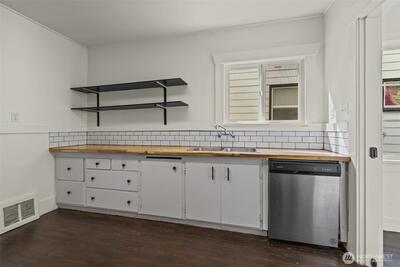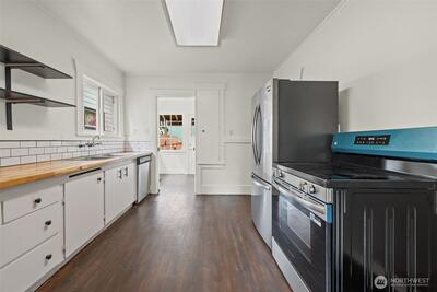 Incredible opportunity, charming quintessential North Tacoma Craftsman. Just minutes to Proctor District favorites and the vibrant energy of 6th Avenue, enjoy the perfect balance of neighborhood charm and everyday convenience. This inviting 3-bedroom, 1-bath home captures classic Craftsman design and a move-in-ready feel. The kitchen is both stylish and functional, featuring new countertops, floating shelves, and new refrigerator and stove. A handy pantry provides additional storage near the kitchen. The refreshed bathroom and brand-new carpet make this home turnkey. Upstairs offers exciting potential to create a  “Jack & Jill” style bathroom and expanded living functionality. Downstairs, the unfinished basement—with both interior and exterior access—opens the door to future expansion, whether you envision additional living space, a home gym, or creative studio. This kind of flexibility is increasingly sought-after in Tacoma homes, where unfinished basements often provide v