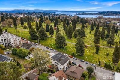 Artistically inspired end unit 3 bed, 2.5 bath townhome just minutes from everything the UW District has to offer. Not your cookie cutter home, this unit offers a sleek, open-concept design with features like cedar tongue and groove ceilings that add a touch of warmth to the home. The second floor main living has a thoughtfully designed open concept living . Modern, high-end finishes include stained concrete slab countertops, subway tile backsplash, stainless farmhouse sink, exposed beam ceilings, lighted cabinetry, custom built-ins, and beautifully appointed baths. Also two outdoor spaces including a private patio on the lower level and a deck of the primary suite. The upper floor contains the spacious prmary suite , full bath with soaking tub, washer/dryer and walk-in closet. The lower level contains the two other bedrooms, full bath and slider to private patio. Enjoy city, lake, and sunset views! Convenient access to I-5 and SR 520, plus close proximity to the Burke-Gilman Trail, Me