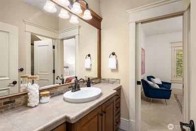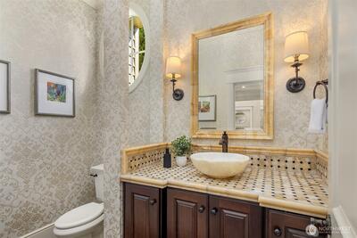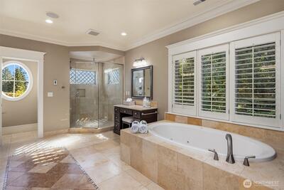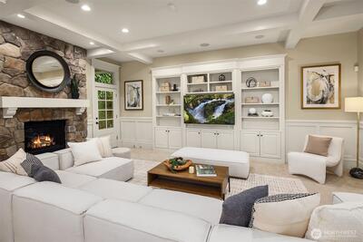 Tucked along a quiet, tree-lined street in Bellevue, this Worthington home evokes the effortless elegance of a Nantucket Coastal retreat. Classic shingle-style architecture, crisp trim, and balanced proportions create a warm, yet sophisticated presence, blending East Coast charm with modern Northwest living. Inside, light-filled interiors unfold with custom hardwoods, soft neutral tones and refined millwork throughout. The open concept main level is designed for both everyday living and elevated entertaing, anchored by a sun-drenched chef’s kitchen that flows seamlessly into expansive living and dining spaces. Large windows and glass doors invite natural light while connecting beautifully to the outdoor setting. Upstairs four serene bedroom suites offer privacy and comfort, including a luxurious primary retreat with spa-inspired bath and generous walk-in closet. Huge workout space, playroom (or 5th bedroom) and designated gift-wrapping area! The outdoor spaces complete the experience