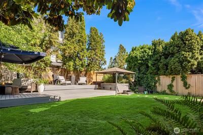 Ultimate south slope of Queen Anne location with views of Space Needle, Seattle skyline, Elliott Bay, Alki Beach, Mt. Rainier & Olympics. Prominently positioned beside iconic Kerry Park, thoughtfully updated home features open, light-filled floor plan w/crisp white millwork, re-finished hardwood floors, and seamless indoor-outdoor living. Expansive main level centers around stunning gourmet kitchen w/premium stainless appliances. Primary suite includes private view deck and fireplace. Lower level offers media room w/bar and guest suite, for extended stays. Top-floor bonus room adds flexible living space. Wraparound deck and rare level backyard not often seen on the south slope. Two-car garage and driveway provide extra off-street parking. Walk to Climate Pledge arena, or many of Queen Anne’s cherished shops, restaurants, and cafes...this is elevated Seattle living at its finest.