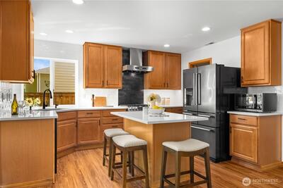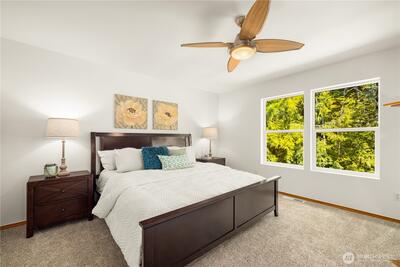 Step into this beautifully updated 4 bed, 2.5 bath home on Snoqualmie Ridge, just minutes from dining, shops, parks, trails, & top-rated schools. Spacious living areas are enhanced by new interior paint & plenty of windows framing the stunning greenbelt views & filling the home with natural light. The main floor offers both formal/informal dining & living spaces, a gas fireplace, large laundry room with sink, & 1/2 bath for guests. The open & beautifully remodeled kitchen boasts quartz counters with tile backsplash, newer appliances including a double oven, gas range & hood, ample counter space, & large walk-in pantry. Upstairs, all 4 beds are large, each with a walk-in closet & provide versatile options for guests, a home office, or a bonus/media room. Conveniently accessible to all bedrooms is the newly updated full bath. The primary suite is a true retreat, highlighted by its own gas fireplace & the private & serene greenbelt backdrop. The luxurious ensuite bath includes a massive w