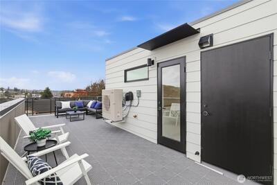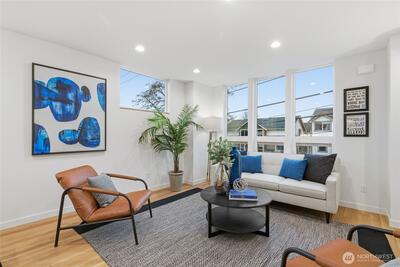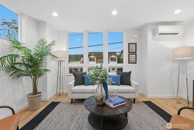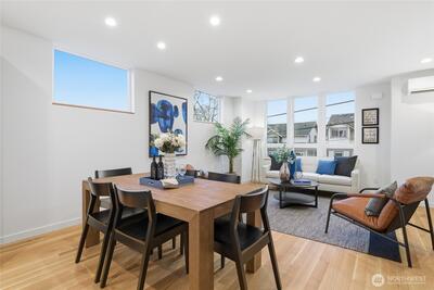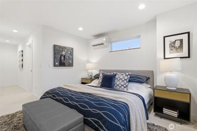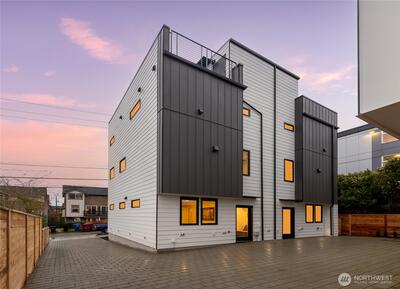 Crisp modern design meets everyday comfort. Four spacious brand-new homes from BuildSound in the heart of Fremont, the Center of the Universe, yet tucked in away from the hustle and bustle of city living. Step into a main-floor great room with wide-plank floors and a standout kitchen featuring a custom tile backsplash, quartz counters, modern cabinets, and stainless appliances. The primary suite offers a spacious ensuite bathroom and generous closet upstairs, with two lower-level bedrooms ideal for guests or work from home. Entertain guests and enjoy stunning views from your private roof deck. Assigned EV-ready parking space. Walk Score 95 - steps away Fremont’s shops, restaurants, and nightlife. Easy commute to SLU/Downtown Seattle.