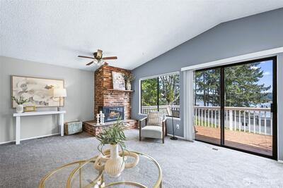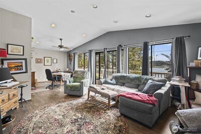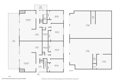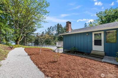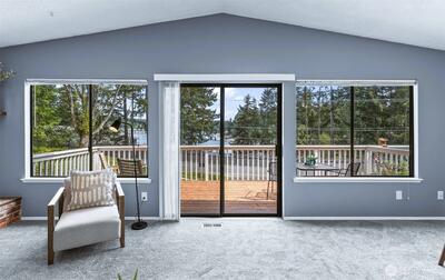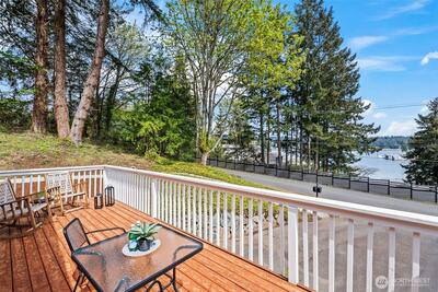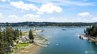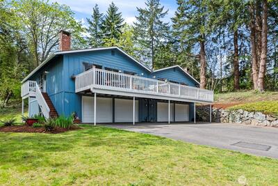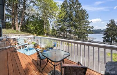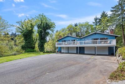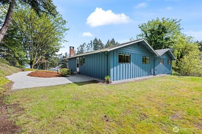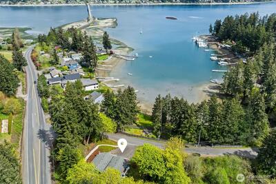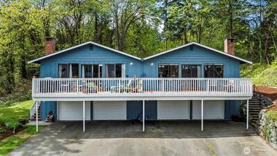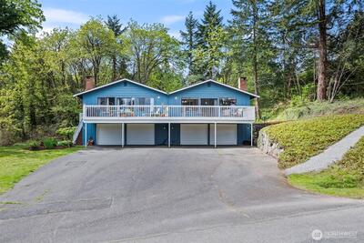 Not just one but TWO Fox Island VIEW homes with more than 2200 sf of garage and storage on a usable 1+ acre lot just across the bridge. So many possibilities are at your fingertips - Live in one, pay the mortgage with the other, take advantage of the space to park all the toys and RV, have a multigenerational compound near the water, or get creative and modify it into one. Each side features a great room with big view windows, vaulted ceilings and sliding doors to the newly resurfaced deck to take in the sunrises, the vistas of Honeymoon Bay and all the activity in Hale Passage. They also each include 2 spacious bedrooms (one with a door to the full bath), a stacked washer/dryer in the hall, and a compact open kitchen on the main level. 296 was renovated in 2016 with new cabinets, granite countertops, new flooring, canned lighting, and resurfaced ceilings (no popcorn). It's currently rented through July 2027 at $1950 per month (under market). 289 is refreshed and ready for quick