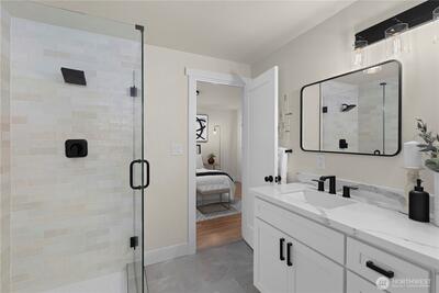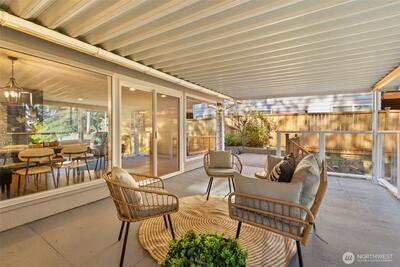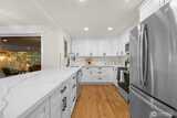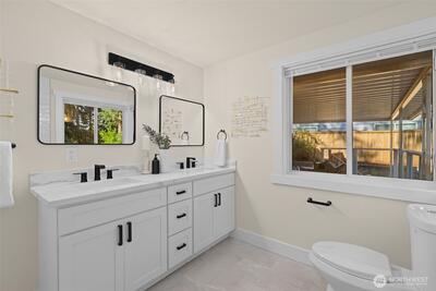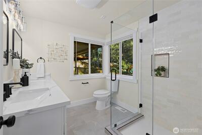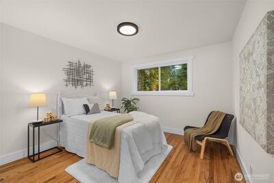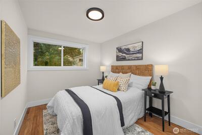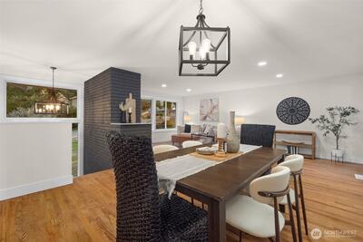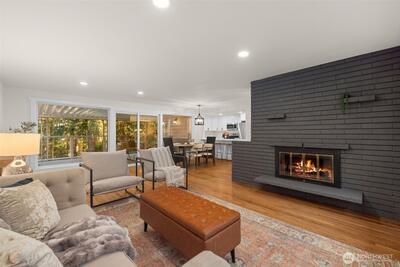 Beautifully renovated 4 bedroom, 2.75 bathroom home tucked at the end of a quiet cul-de-sac. Enjoy deeded access to the Civic Club, a private Lake Washington waterfront community offering a beach, dock, and boat launch. The light filled kitchen features quartz countertops, new cabinetry, and new appliances. The kitchen opens effortlessly to the living and dining areas, creating a seamless and inviting space for everyday living and entertaining. Step outside to a covered deck designed for year round enjoyment, complete with peekaboo Lake Washington views in the winter. The main level showcases newly refinished hardwood floors, a spacious primary suite, and two additional bedrooms. A wood burning fireplace connects both levels, bringing warmth and character to the home. The lower level offers exceptional flexibility with two separate ground level entries, a generous living area, bedroom, and full bath. There is space to add a kitchenette, presenting an ideal opportunity for multigenerati