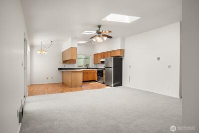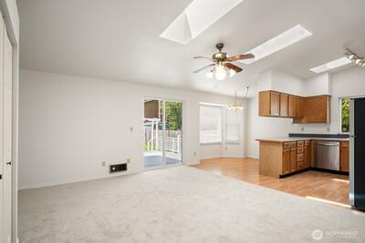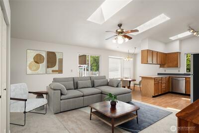 Move-in ready 3-bedroom, 1.75-bath rambler in highly desirable Cherokee Bay. Featuring an open floor plan with vaulted ceilings, skylights and a cozy wood fireplace, full of natural light, all creating an inviting atmosphere. Freshly painted interior & exterior as well as brand-new carpet all recently completed in 2026. Step outside to enjoy the large back patio and level lawn with plenty of garden space, perfect for relaxing or entertaining. Large two car garage. Conveniently located with easy access to Kent Kangley Road, Hwy 169, and Hwy 18, this home combines move-in ready comfort in a great location. Enjoy all that Cherokee Bay has to offer from the private lakefront beach park with boat launch, beach with swimming area/dock, playground and clubhouse. Coveted Tahoma School District.