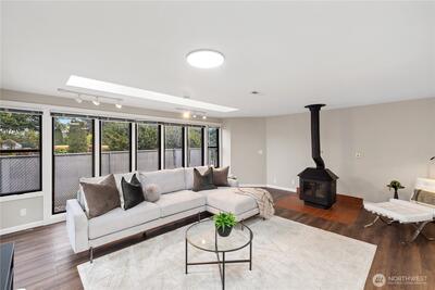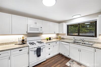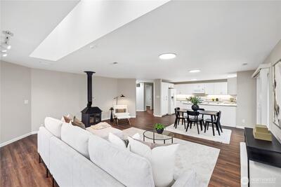 Experience easy one-level living in this charming Des Moines home, perfectly positioned to capture stunning views of the Puget Sound and Olympic Mountains. This beautiful home offers 3 bedrooms and 1.75 bathrooms, with fresh interior paint, updated flooring, and a beautifully refreshed kitchen. The open concept kitchen features a gas stove and flows seamlessly into the main living areas, creating a warm and inviting space ideal for everyday living and entertaining. A freestanding gas stove adds both charm and comfort, perfect for cozy evenings at home. Step outside to a fully fenced backyard—ideal for pets, play, or relaxing in privacy. Enjoy the convenience of a short walk to Marine View Drive, where you’ll find local shops and restaurants, or take a stroll to Des Moines Beach Park and Marina for waterfront exploration, scenic views, and outdoor recreation. This home offers the perfect blend of comfort, convenience, and Pacific Northwest beauty—don’t miss this opportunity!