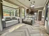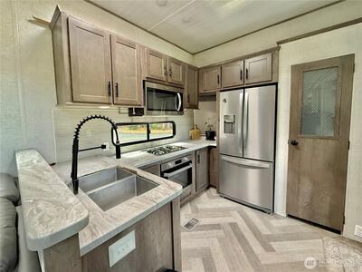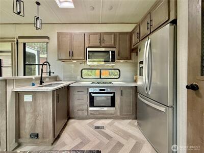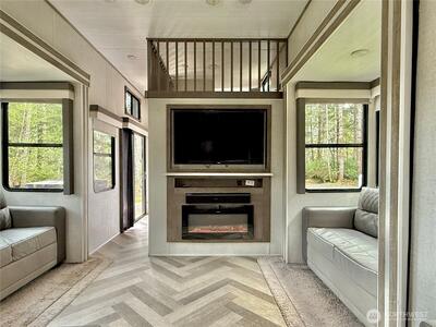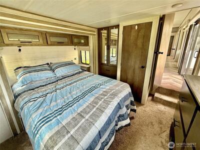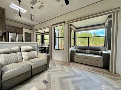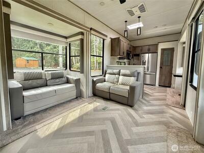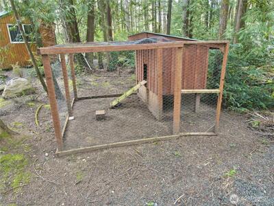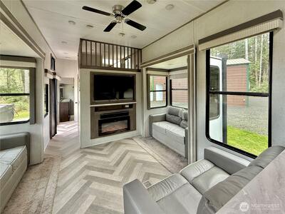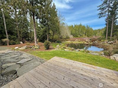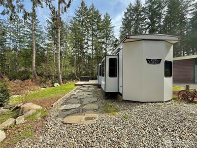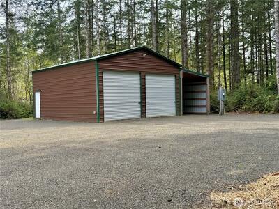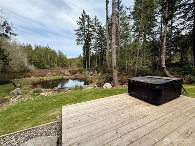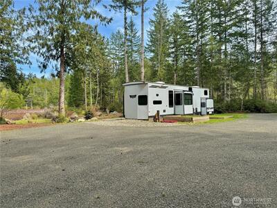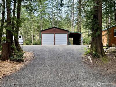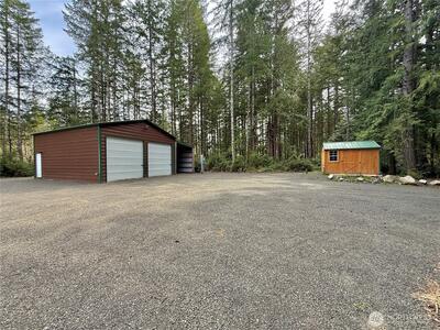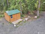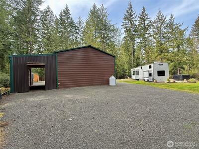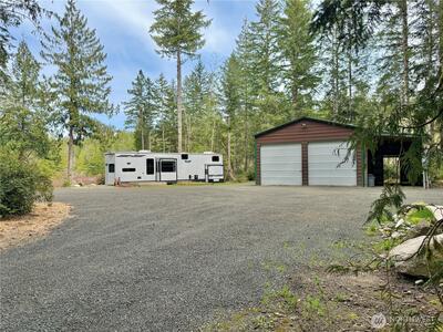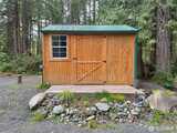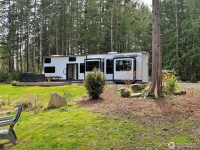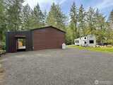 True Pacific Northwest paradise—1.25 acres of private, beautifully landscaped grounds featuring a 28x30 shop and a modern park model overlooking a pond. The shop is well-equipped with a concrete floor, 12x30 lean-to, 220 power, dual 200-amp panels, and water—ideal for projects, storage, or future expansion. The park model offers over 550 sq ft of thoughtfully designed living space that feels like a cabin. Inside, you’ll find a spacious kitchen and dining with generous countertops and dining table, a comfortable living area with opposing sofas, entertainment center, and electric fireplace, plus a private bedroom with a king bed and built-in storage adjacent to a bathroom with shower. A loft provides additional sleeping space or storage. Step outside to a deck with hot tub overlooking the pond—perfect for relaxing and taking in the peaceful setting. A custom pump house adds functi
