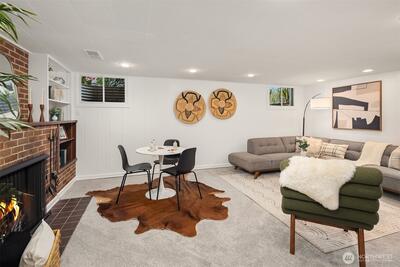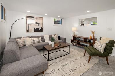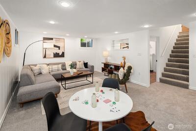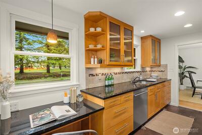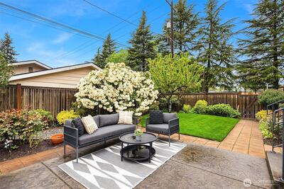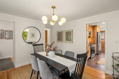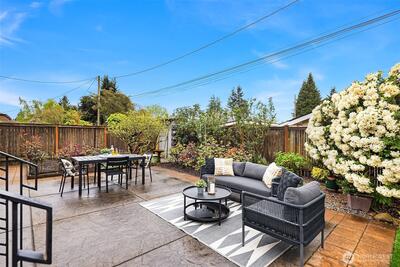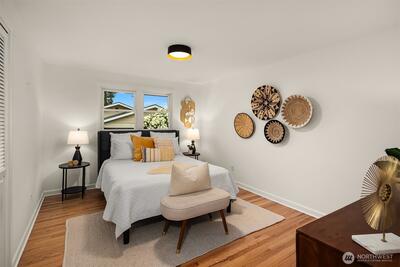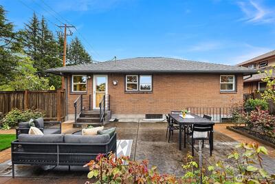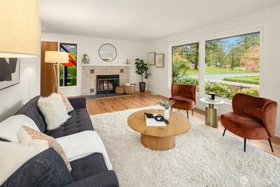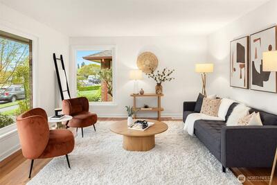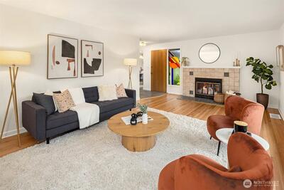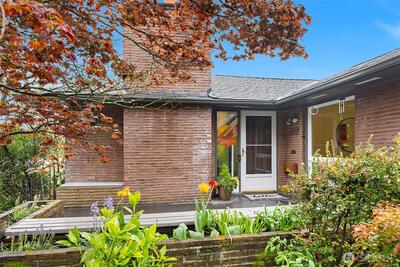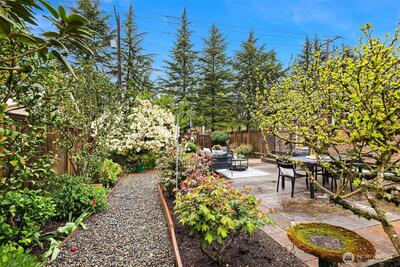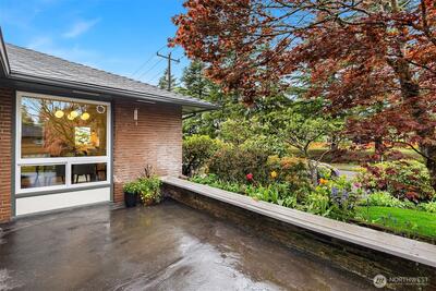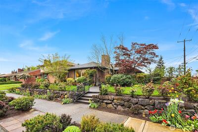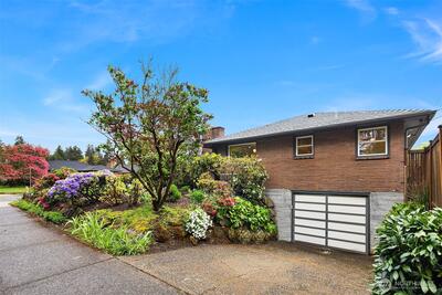 The corner charmer you won’t want to miss. First time on the market in over 40+ years, this lovingly maintained 1953 home offers a rare opportunity to own a true legacy property. Set directly across from newly renovated View Ridge Park, the setting is as special as it is convenient. A welcoming front porch and spacious back patio make indoor-outdoor living easy. The main level offers a large, light-filled living room, dedicated dining space, and an updated kitchen with direct access to the backyard, along with a coveted three-bedroom layout all on one level. Thoughtful updates include newer windows, a heat pump for efficient heating and A/C, fresh interior paint, and beautifully refinished hardwood floors (protected under carpet for decades!) The lower level offers a generous rec room, three quarter bath, laundry, and expansive utility/storage area, plus an attached two car garage. The grounds are truly special, with abundant, thoughtfully curated rose gardens planted by master garde