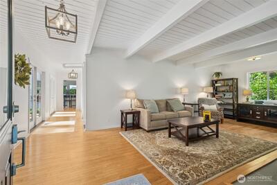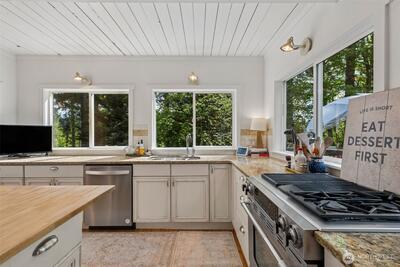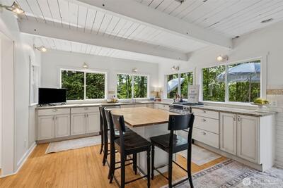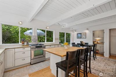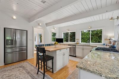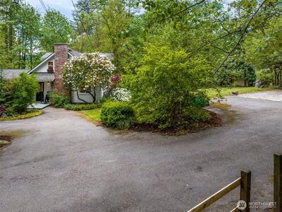 This enchanting cottage-style retreat is a blend of charm, thoughtful updates & lifestyle flexibility on an expansive 1.43-acre property tucked into Tiger Mtn! AND, if you have been wanting to get into the Issaquah Sch Dist., this all-updated home offers an exceptional price & opportunity! From the moment you arrive, the setting draws you in w/an expansive tiled front patio creating an elegant & welcoming first impression—perfect for morning coffee or an evening glass of wine. The home itself exudes timeless cottage appeal, enhanced by years of careful updates. New flooring throughout most of the home, complemented by fresh interior paint that brightens every space. The main level showcases beautiful white-painted open beam ceilings, adding architectural interest & an airy, spacious feel. The remodeled kitchen is both stylish & functional. Custom French-style cabinetry offers a refined, European-inspired aesthetic, while thoughtfully leaving upper wall space open to preserve the natu